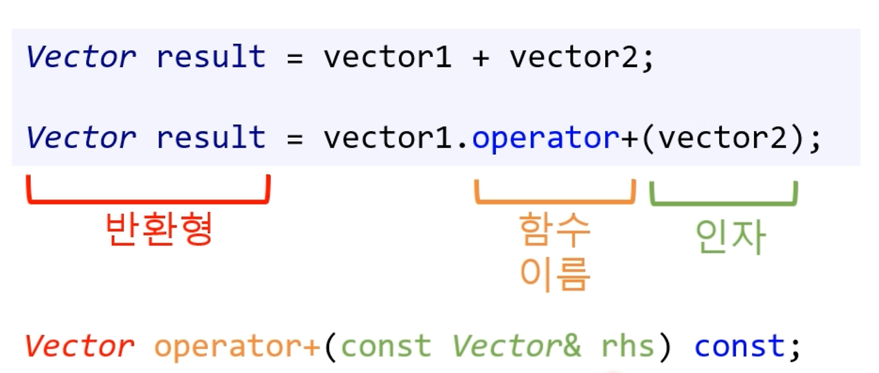 Vector sum = v1.operator+(v2); // 위와 동일하다.
