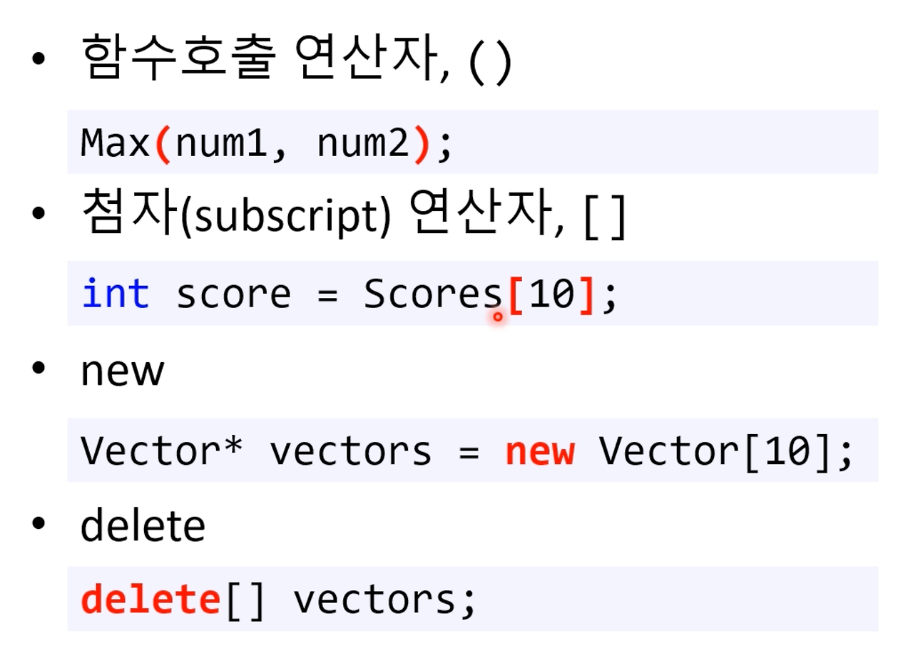 - 특정 연산자들은 멤버 함수를 이용해서만 오버로딩이 가능하다.