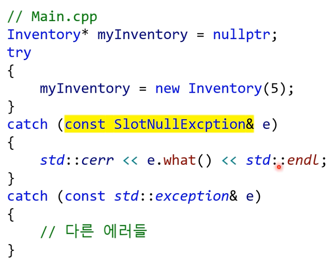 catch (const std::exception& e) // out_of_range가 받지 못한 예외를 여기서 모두 받겠다.