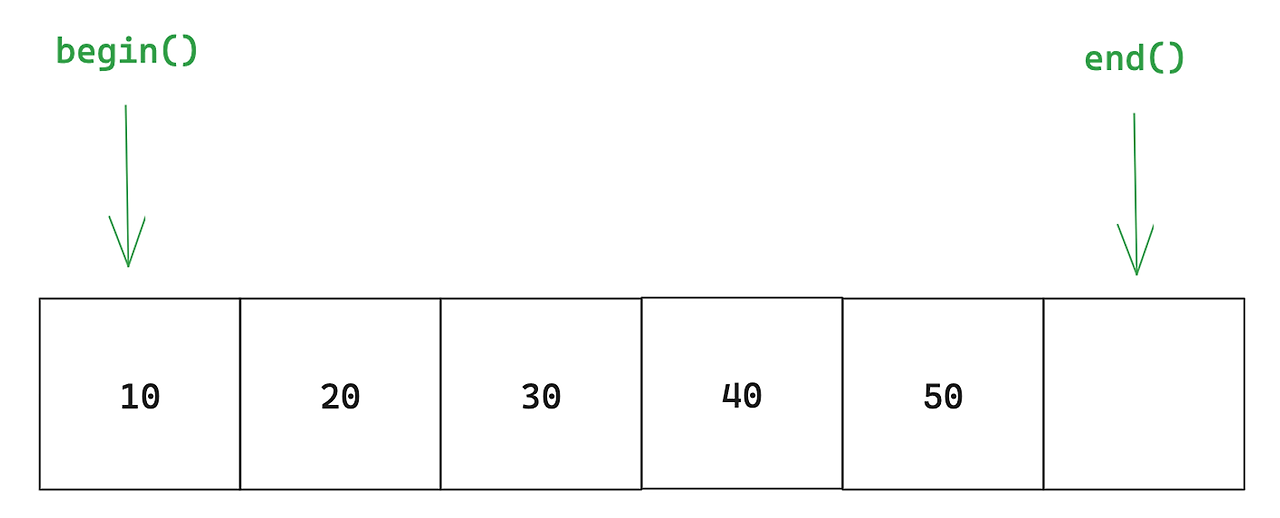 std::vector<type>::iterator iter;begin(): 첫 번째 요소를 가리키는 iterator를 반환한다.end(): 마지막 인자 뒤의 요소를 가리키는 iterator를 반환한다.