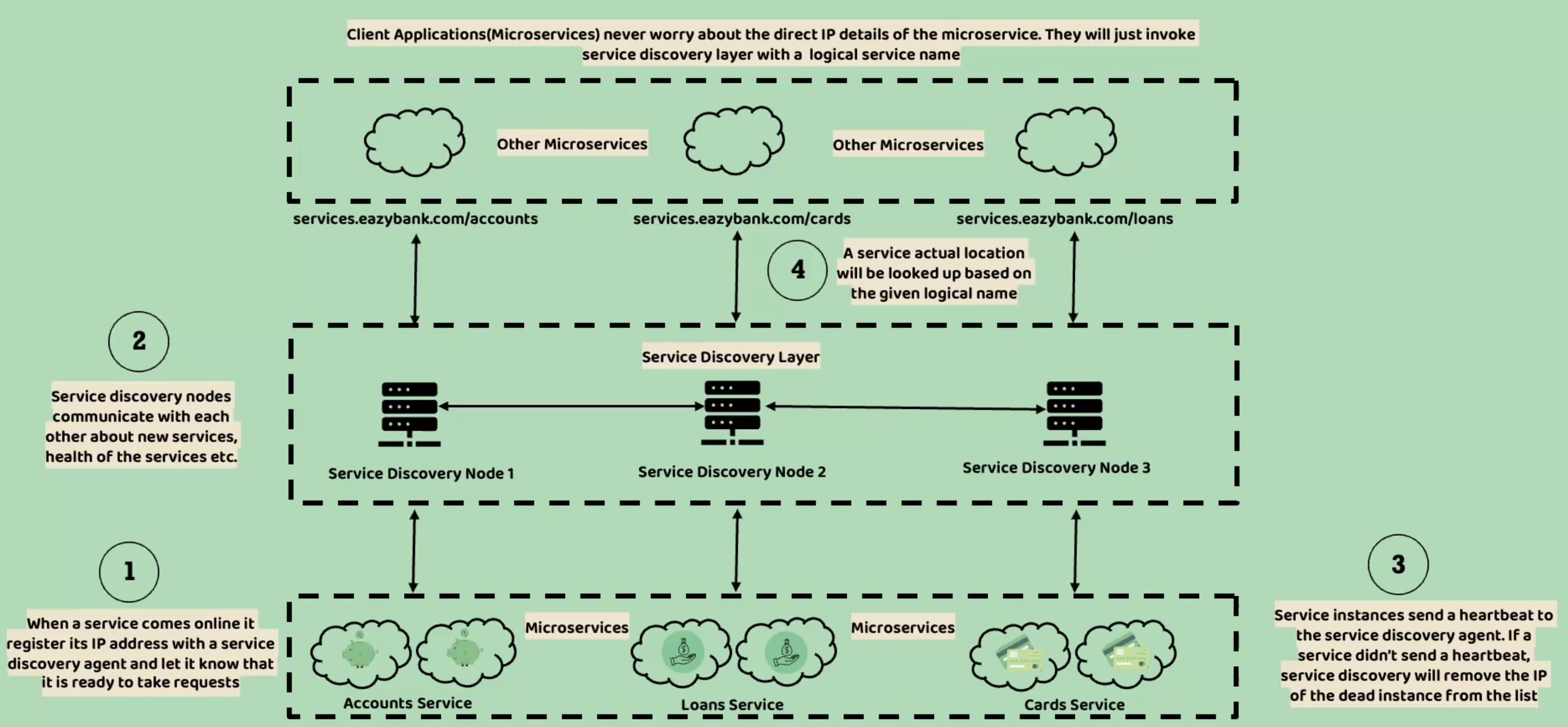 - 애플리케이션들은 자신의 정보를 서비스 레지스트리에 자신을 등록해야하는 책임이 있다.