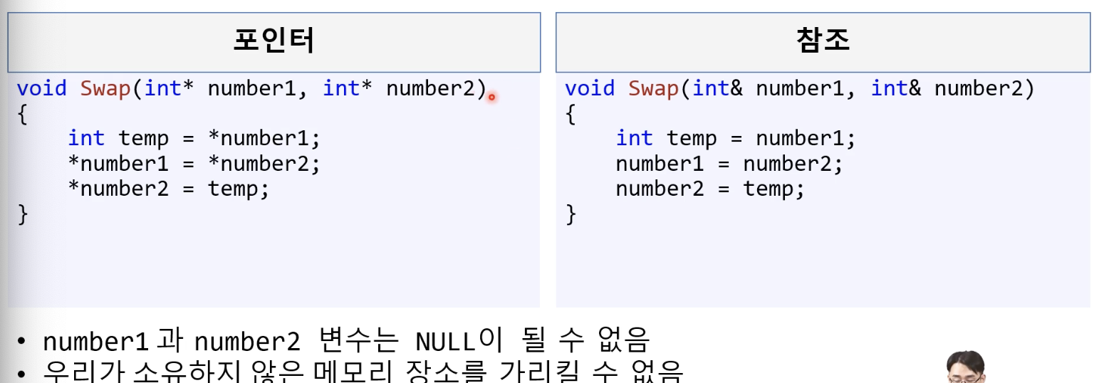 - 언어에서 참조가 가리키는 주소를 바꿀 수 없게 제한하는 것이지 포인터와 똑같다.