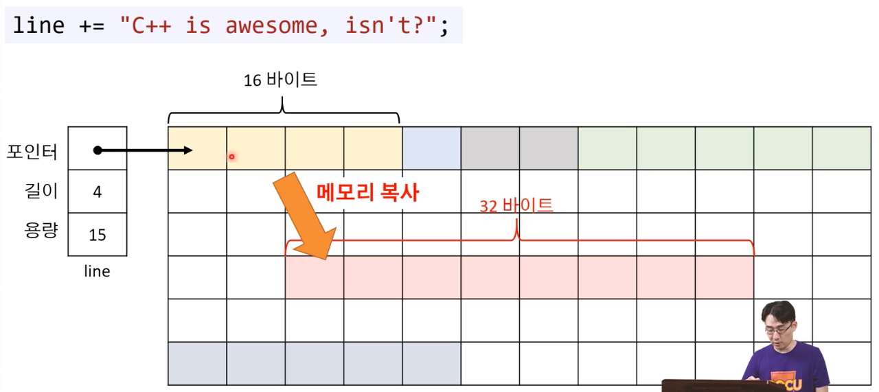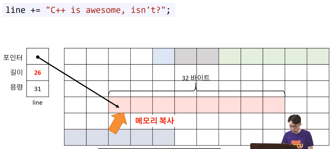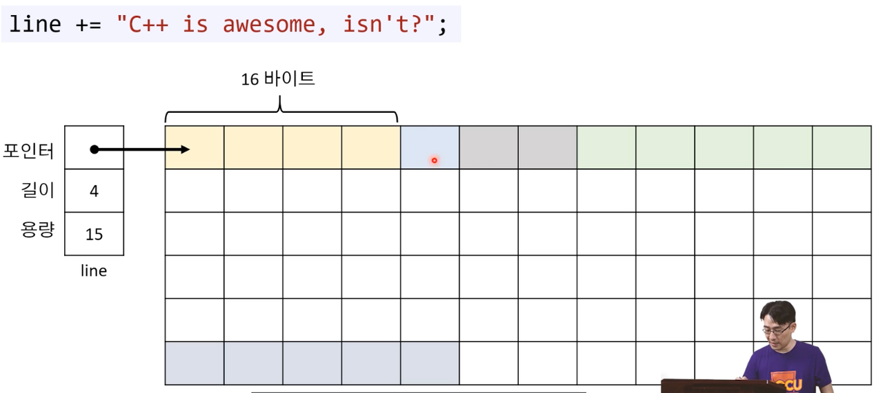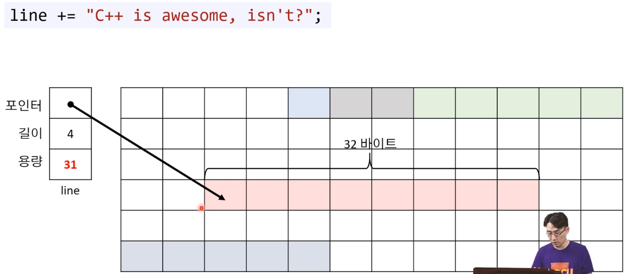 - std::string 클래스를 이용한 문자열은 길이가 증가할 수 있다.