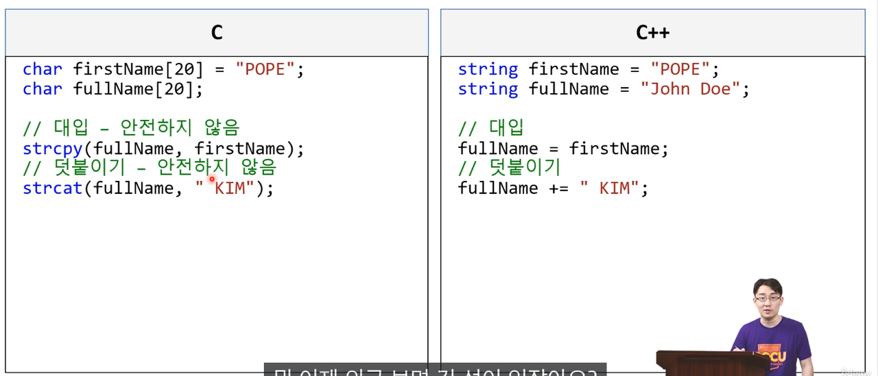 - 문자 배열 길이에 관해 고민할 필요가 없다.